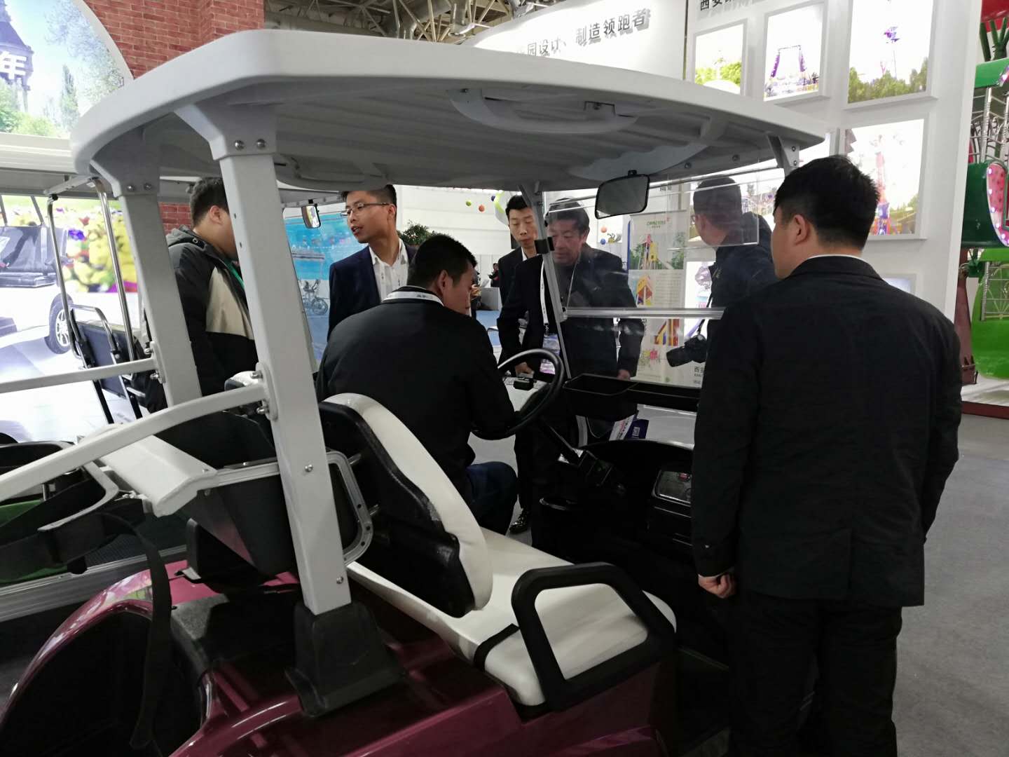 展會(huì)上,我公司電動(dòng)車輛吸引了眾多參觀者的目光,來(lái)自景區(qū),游樂(lè)場(chǎng)等各行各業(yè)有合作意向的專業(yè)客戶和我公司工作人員進(jìn)行詳細(xì)地咨詢與洽談。